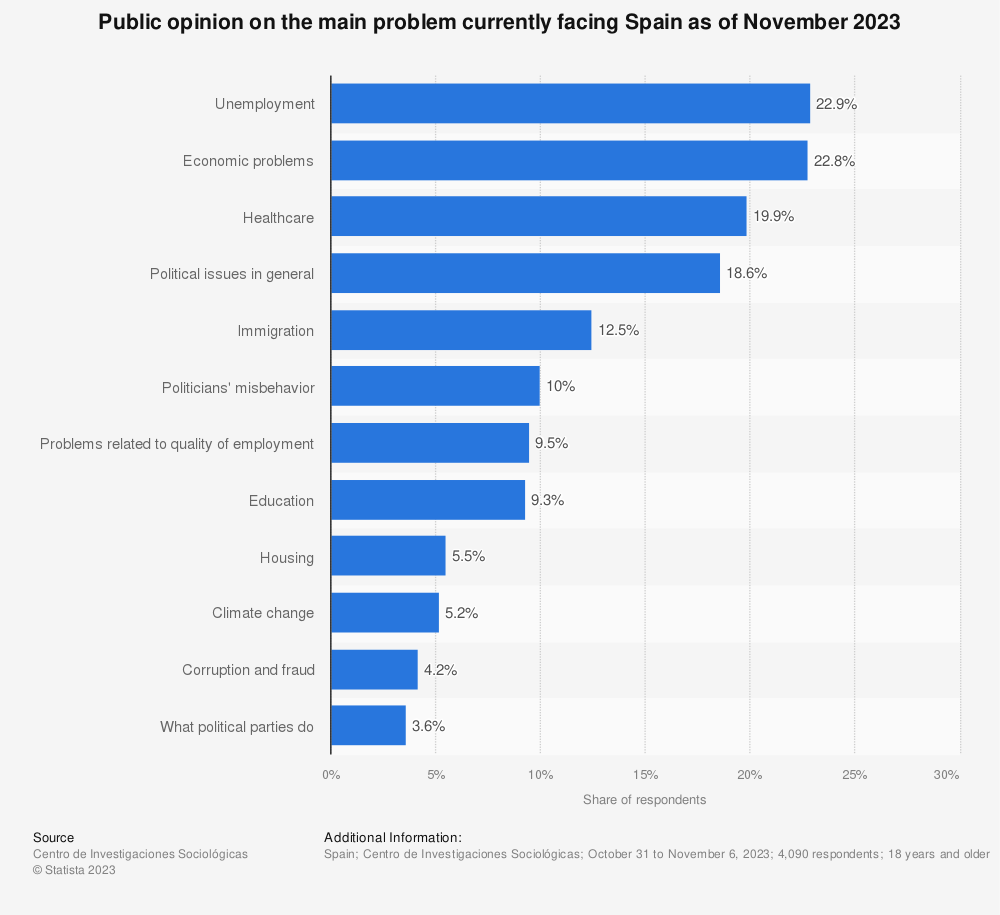 When we have a look at public opinion in Spain and what they consider their main problem, we cannot immediately conclude that Spain suffers from political or societal polarisation.